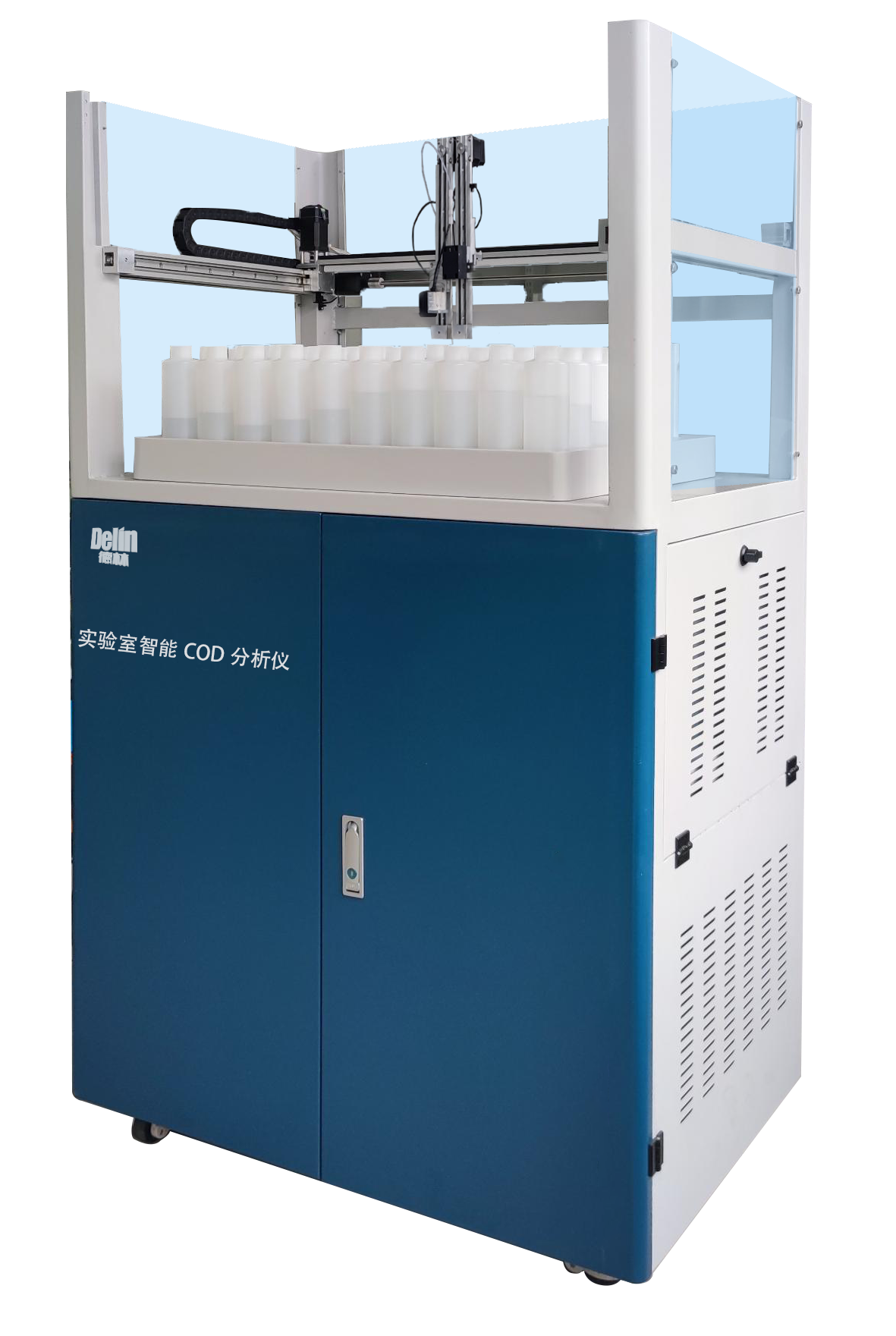產品概述 DL1001型實驗室智能COD分析儀按照新標準HJ828-2017規定的手工測試方法與反應條件,采用先進的智能控制與消解技術,實現了實驗室COD批量自動化分析,取得和HJ828-2017規定的手工測試方法相同的結果。儀器配置的取樣器,操作簡單,只需將取樣瓶放入取樣架上,點擊儀器啟動鍵即可自動完成樣品的信息讀取、登記、樣品均化、取樣、做樣;同時,本產品能提前預判水樣的氯離子濃度和COD值,并根據氯離子和COD的預估值,自動選擇合適的量程進行做樣,解決了市場現有儀器存在的樣品二次測定問題。儀器24小時無人值守連續工作,可測定樣品90個樣次,儀器使用時,直接連接電腦,其專用軟件控制儀器流程并對數據進行處理,用戶可通過無線網絡,利用手機等設備隨時監控儀器動態。 該儀器德林擁有完全自主知識產權,經8年的研發,集聚多項專利精心智造(專利號:201510525493.5;201511010214.8;201511010600.7;201510864190.6;201510855044.7;201610802016.3;201610801010.4;201710344194.0; 201920370855.1)。 適用范圍 該儀器適用于各級環境監測站、科研單位、檢測公司、運營公司、污水處理廠等機構進行實驗室批量COD分析。 儀器結構 實驗室智能COD分析儀由配液系統、協調系統、消解系統、滴定系統以及控制系統組成,是流動分析與經典容量分析的完美結合。