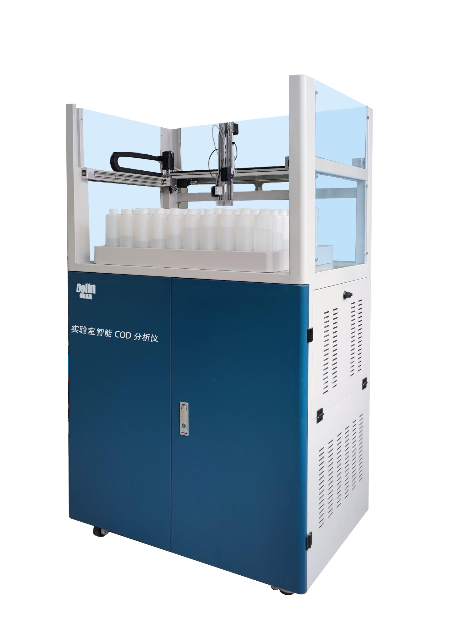 DL1001型實驗室智能COD分析儀按照新標準HJ828-2017規(guī)定的手工測試方法與反應條件,采用先進的智能控制與消解技術(shù),實現(xiàn)了實驗室COD批量自動化分析,取得和HJ828-2017規(guī)定的手工測試方法相同的結(jié)果。儀器配置的取樣器,操作簡單,只需將取樣瓶放入取樣架上,點擊儀器啟動鍵即可自動完成樣品的信息讀取、登記、樣品均化、取樣、做樣;同時,本產(chǎn)品能提前預判水樣的氯離子濃度和 COD值,并根據(jù)氯離子和COD的預估值,自動選擇合適的量程進行做樣,解決了市場現(xiàn)有儀器存在的樣品二次測定問題。儀器24小時無人值守連續(xù)工作,可測定樣品90個樣次,儀器使用時,直接連接電腦,其專用軟件控制儀器流程并對數(shù)據(jù)進行處理,用戶可通過無線網(wǎng)絡,利用手機等設備隨時監(jiān)控儀器動態(tài)。 分析儀內(nèi)置有快速分析系統(tǒng),能提前預判水樣的氯離子含量和COD濃度值,因此,水樣只需測定一次,克服了市場現(xiàn)有儀器的重復測量問題。 該儀器德林擁有完全自主知識產(chǎn)權(quán),經(jīng)8年的研發(fā),集聚多項專利精心智造(專利號:201510525493.5;201511010214.8;201511010600.7;201510864190.6;201510855044.7;201610802016.3;201610801010.4;201710344194.0;201920370855.1)。該儀器適用干各級環(huán)境監(jiān)測站、科研單位、檢測公司、運營公司、污水處理廠等機構(gòu)進行實驗室批量COD分析。